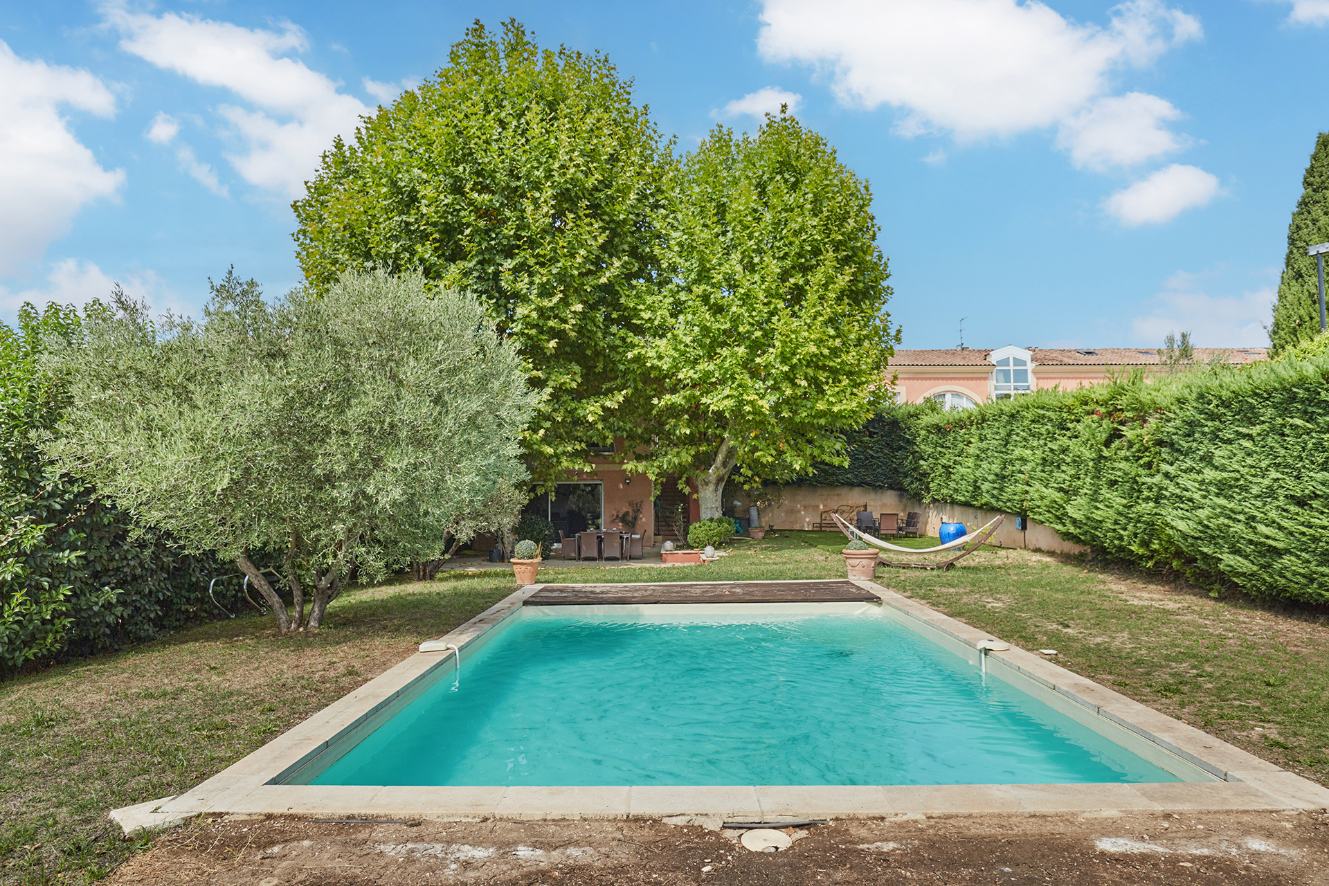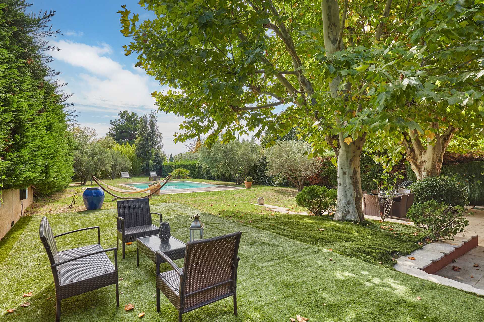 Au sein d’une résidence de standing avec tennis et piscine commune, sur les hauteurs au Nord Ouest d’Aix en Provence, venez découvrir cet appartement – comme une maison – avec jardin privatif de 880 m2 au calme absolu disposant de sa propre piscine au sel. Véritable cocon, ce triplex saura vous charmer grâce à de belles prestations et son style loft. La pièce de vie de 37 m2 ouvre directement sur le jardin et sa terrasse ombragée l’été, au premier étage deux chambres et deux salles d’eau et pour finir au dernier étage deux chambres mansardées- un espace idéal pour les enfants, télétravail ou chambres d’ami. Un bien rare sur le marché ne nécessitant aucun travaux, au calme, et à 3 kilomètres seulement de la Rotonde. Charges annuelles 5400 € . Prix de vente 700 000 € (honoraires charge acquéreur inclus de 3%) .RCS Aix 843 146 408.
