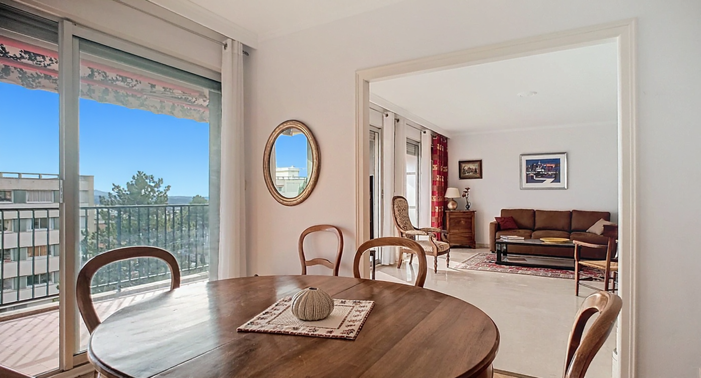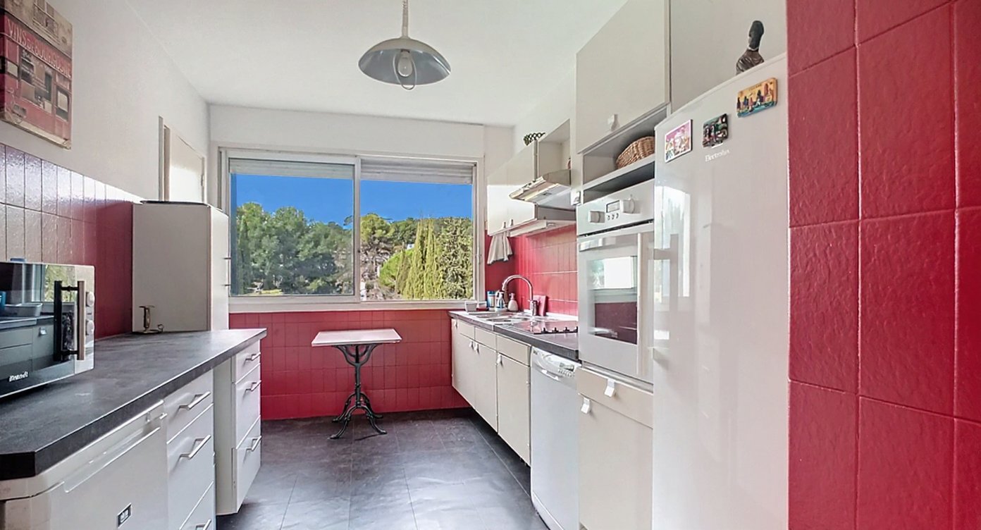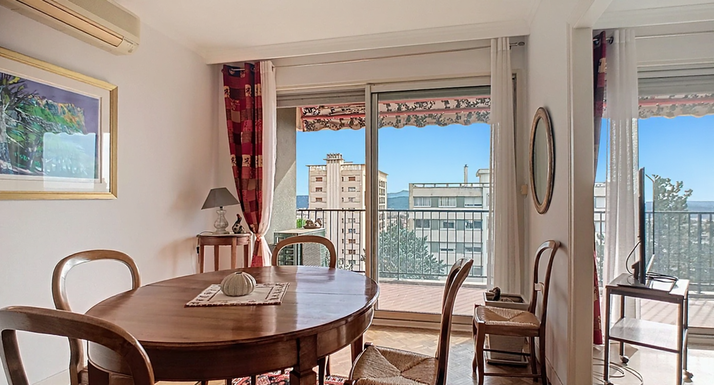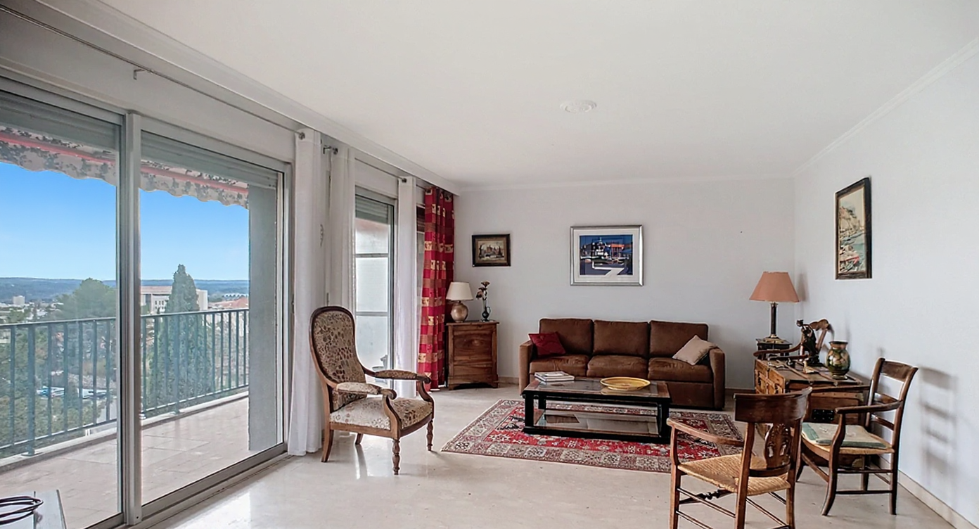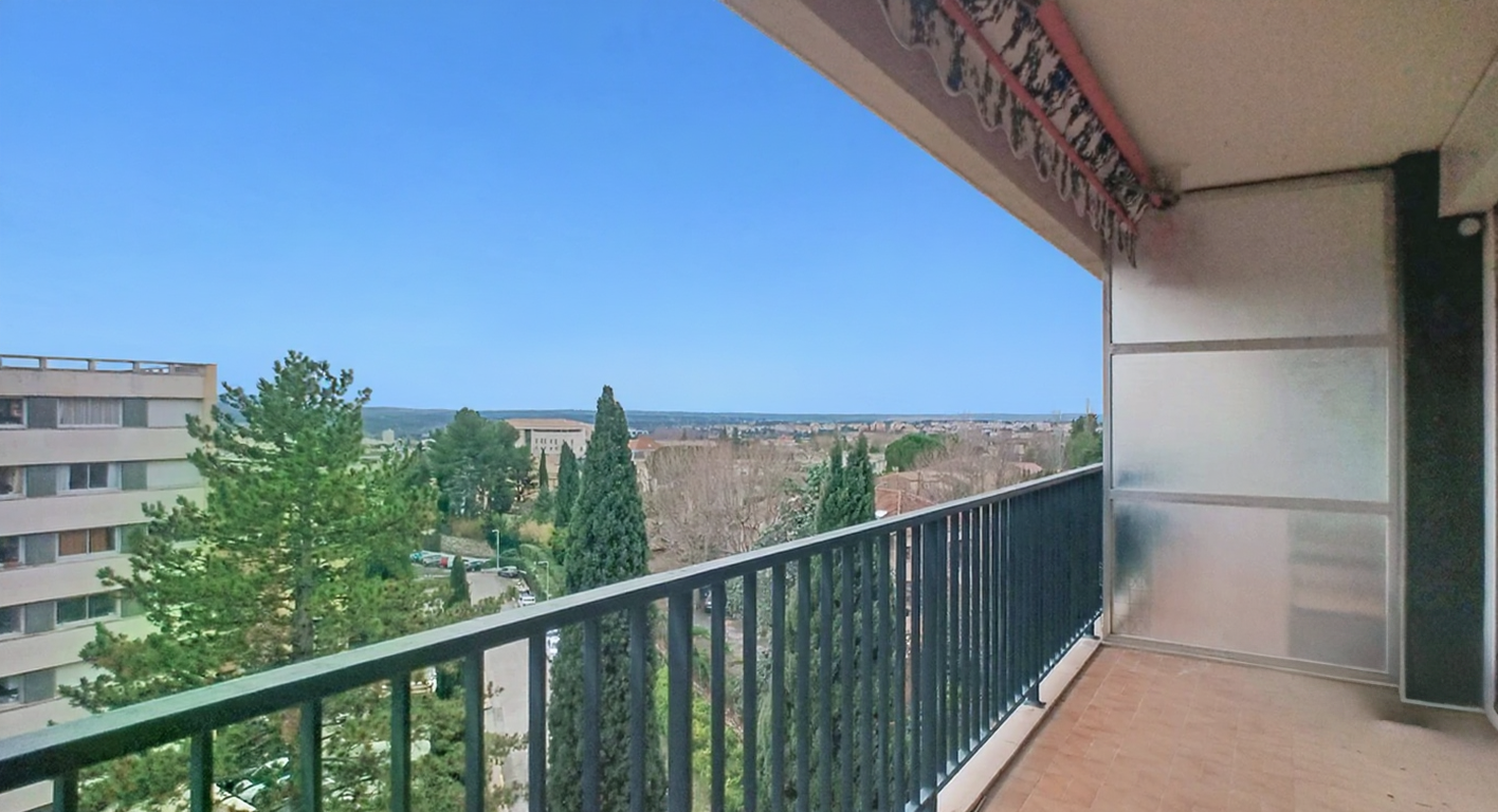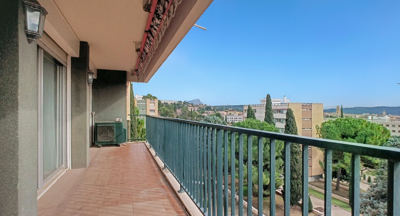 Vous êtes à la recherche d’un appartement spacieux proche du centre ville à pied? Nous vous présentons cet appartement de 111 m2 en étage élevé avec triple exposition et vue dominante sur Aix, la Ste Victoire, le Massif de l’Etoile et tous les alentours. Hall d’entrée,séjour double de 38 m2 (possibilité de créer une chambre suppélemntaire) avec baies vitrées ouvrant sur une terrasse de 15m2 au sud bénéficiant de ce panorama. Cuisine équipée avec loggia-buanderie attenante. Le coin nuit est composé d’un dégagement avec rangements, d’un dressing et de trois chambres. Une salle de bain avec toilette, une salle d’eau, et un toilette séparé complètent cet espace. Ascenseur, cave au sous sol, stationnement aisé près de l’immeuble dans le parking fermé de la résidence. Charges annuelles 3600e incluant chauffage , eau chaude, eau froide, gardien). Prix de vente 580 000 € (frais d’agence inclus à la charge de l’acquéreur).RCS Aix 843 146 408