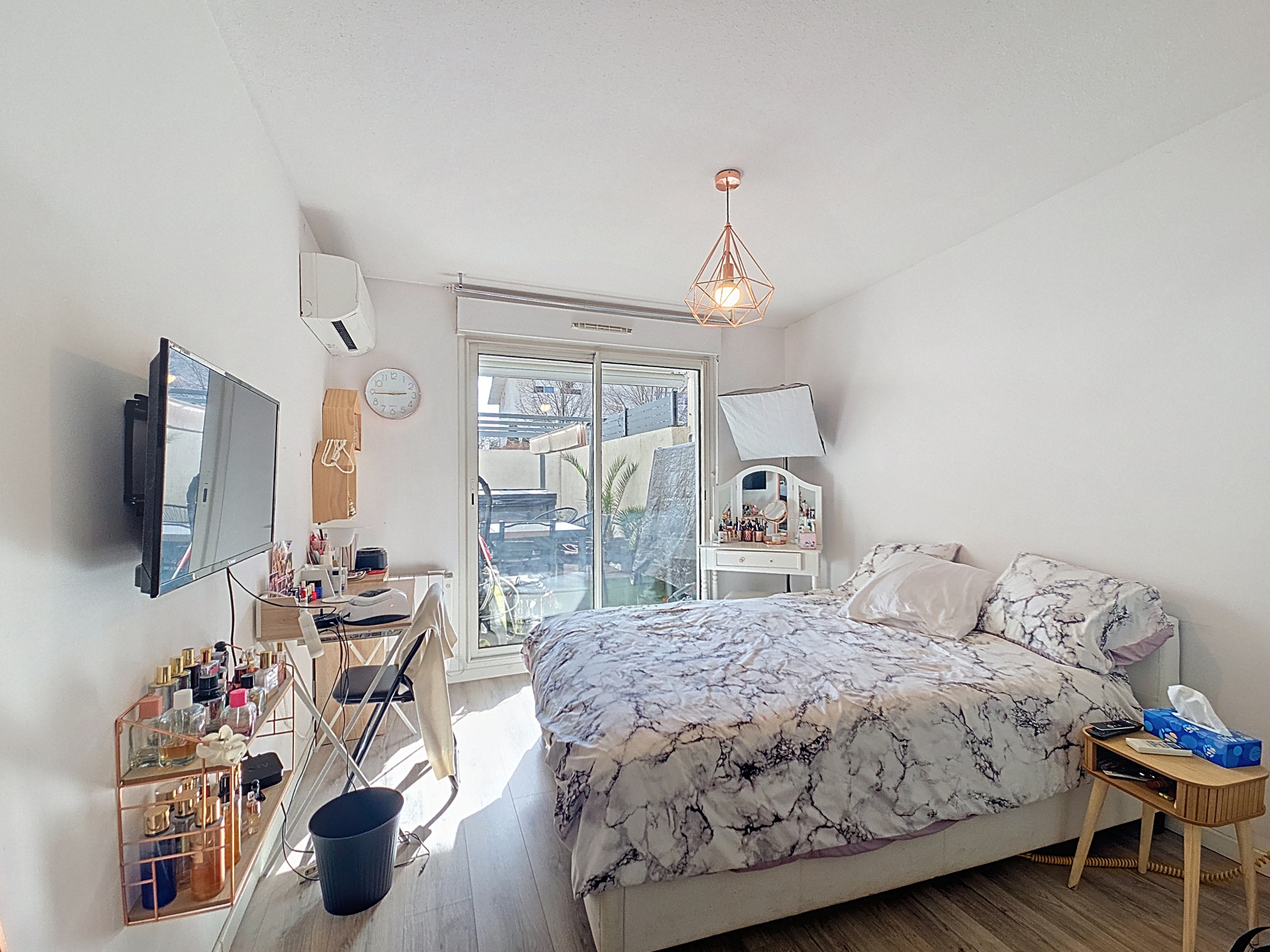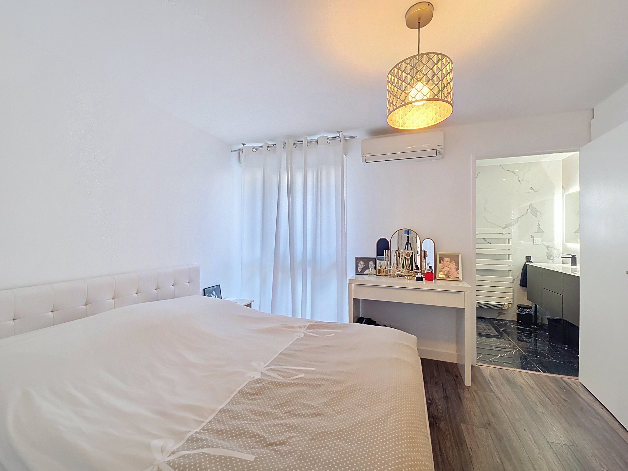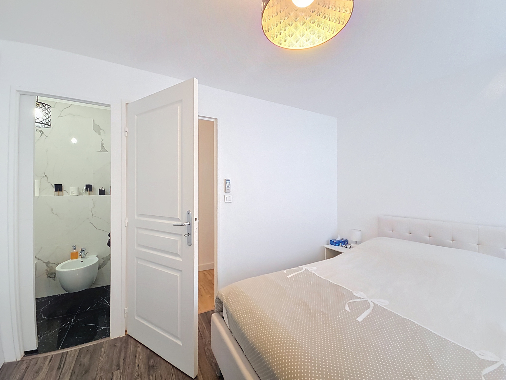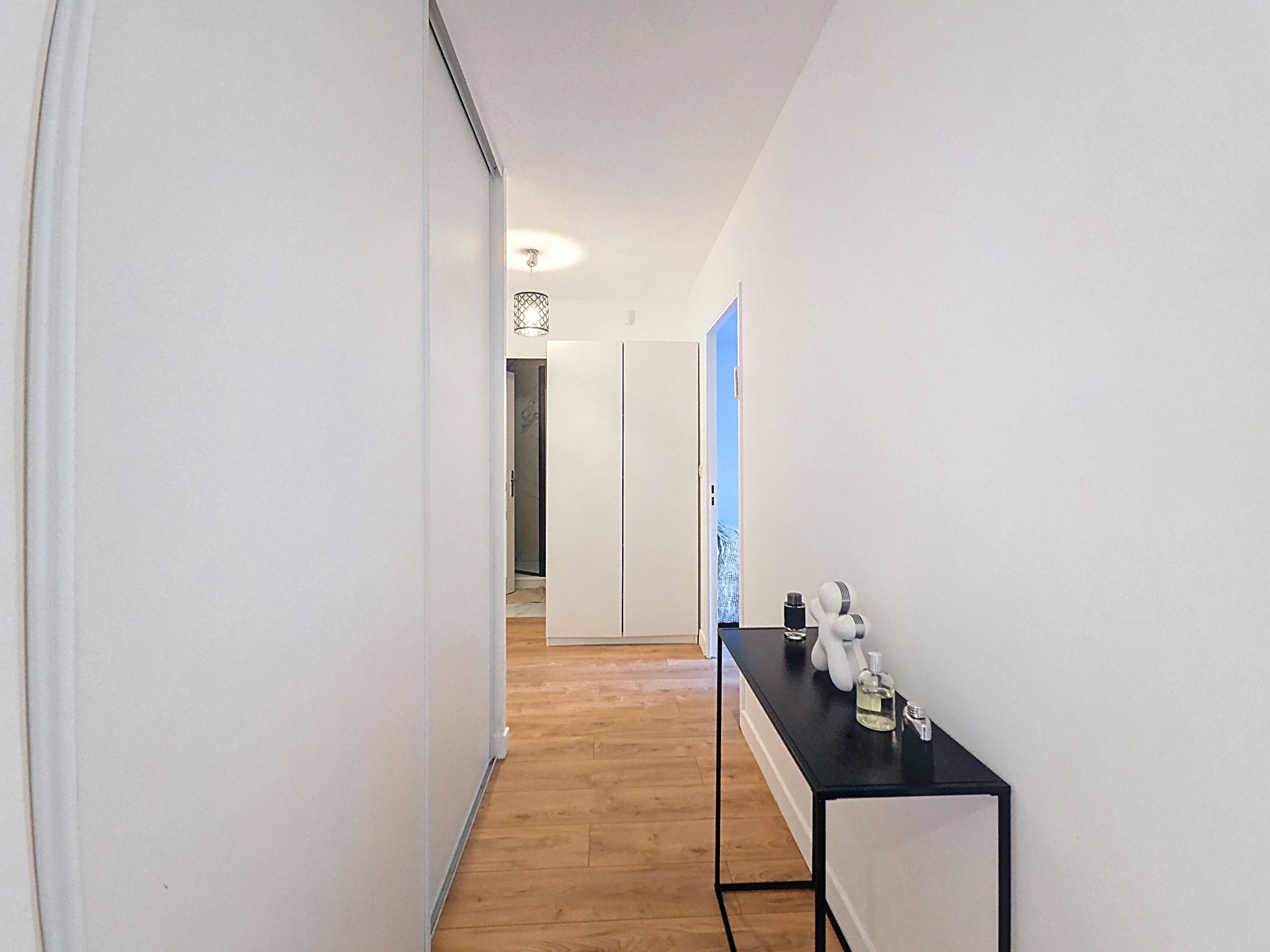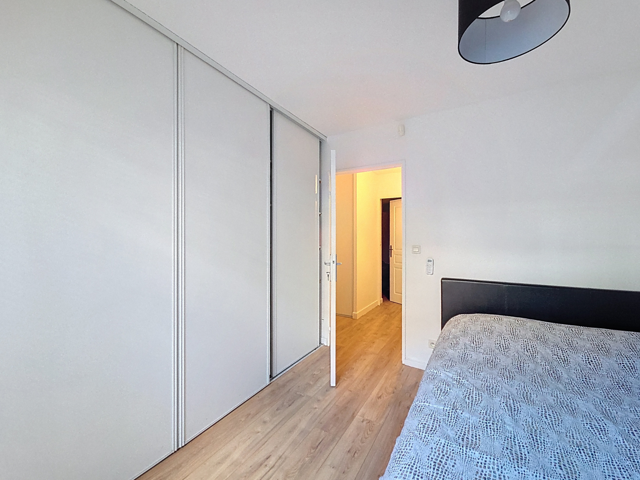 La suite parentale est parfaitement isolée avec dressing intégré, salle d’eau et WC. L’espace enfants comprend trois chambres de 12 à 13 m2, toutes avec grands placards et coin bureau, idéal pour des adolescents. L’appartement est en excellent état, parquet sans seuil sur presque toutes les pièces, fibre installée et deux cumulus (100 L et 300 L).