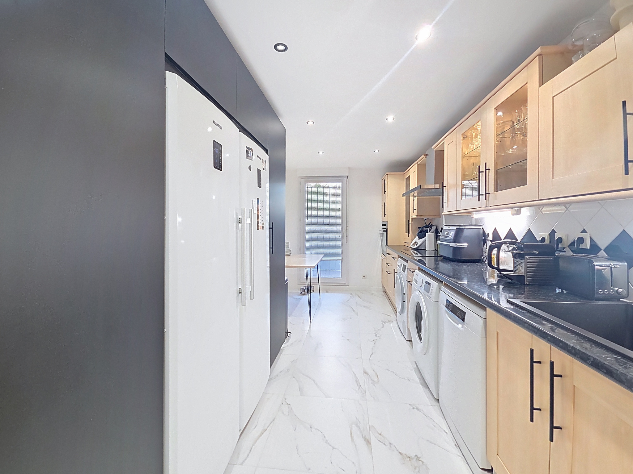 À vendre à Aix-en-Provence : grand appartement 5 pièces de 122 m2 en rez-de-jardin, idéal pour un couple avec adolescents à la recherche d’espace, de confort et de luminosité, sans jardin à entretenir. Le séjour-salle à manger de 38 m2, lumineux grâce à son exposition sud / sud-ouest, s’ouvre sur une terrasse de 50 m2 avec jacuzzi et stores électriques, créant un espace de vie convivial parfait pour se détendre ou recevoir. La cuisine indépendante de 15 m2, entièrement équipée, dispose d’une loggia avec accès direct depuis la rue, très pratique pour les courses quotidiennes.