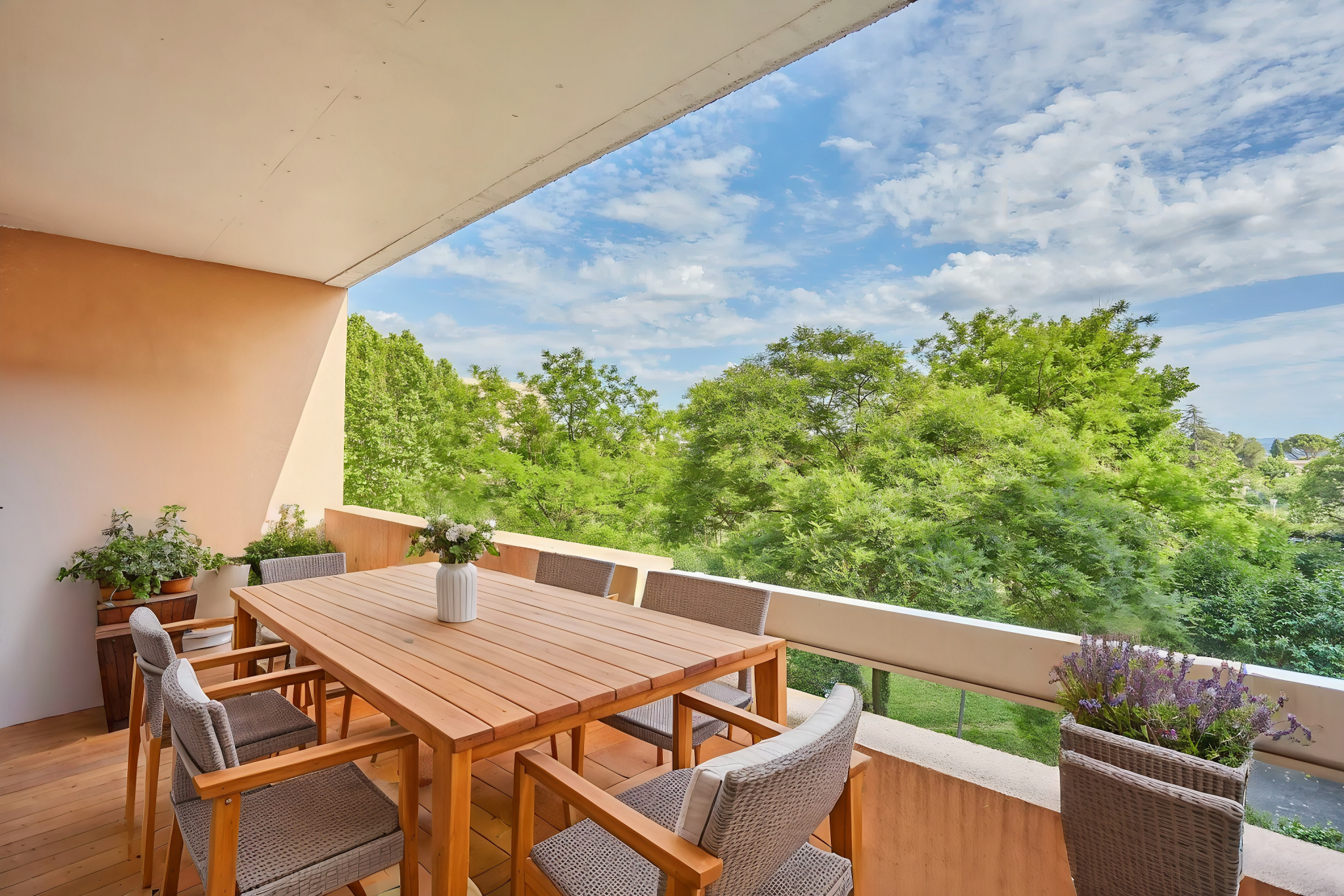 Aix-en-Provence, dans une résidence sécurisée, appartement traversant Nord / Sud de 73m2 51 (Loi Carrez) en étage, accessible par ascenseur. Le séjour double de 30 m2 et la cuisine sont séparés par un mur non porteur, donnant sur une belle terrasse ensoleillée de 10m2, calme absolu, vues dégagées sur le jardin de la copropriété. Salle à manger avec loggia vitrée. Le coin nuit vous accueille par un pallier distribuant ses deux chambres, un grand dressing, une salle de bain et un toilette séparé. Possibilité 3è chambre (double séjour). Situé à proximité du Cours Mirabeau à pieds,avec un accè facile vers Marseille, la gare TGV et Marignane, cet appartement offre un potentiel très interessant ! Copropriété de 70 lots d’ habitation. Charges de copropriété annuelles 2.040 €. Prix de vente 318.000 € Honoraires d’agence inclus 4,5 % TTC du prix vendu, charge acquéreur.