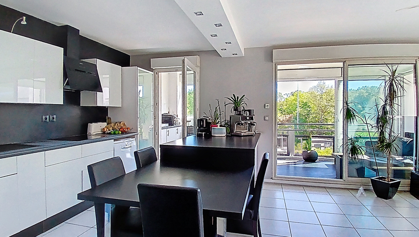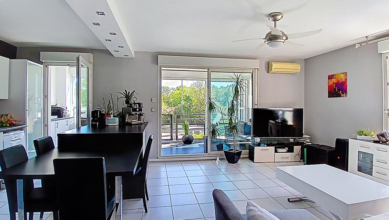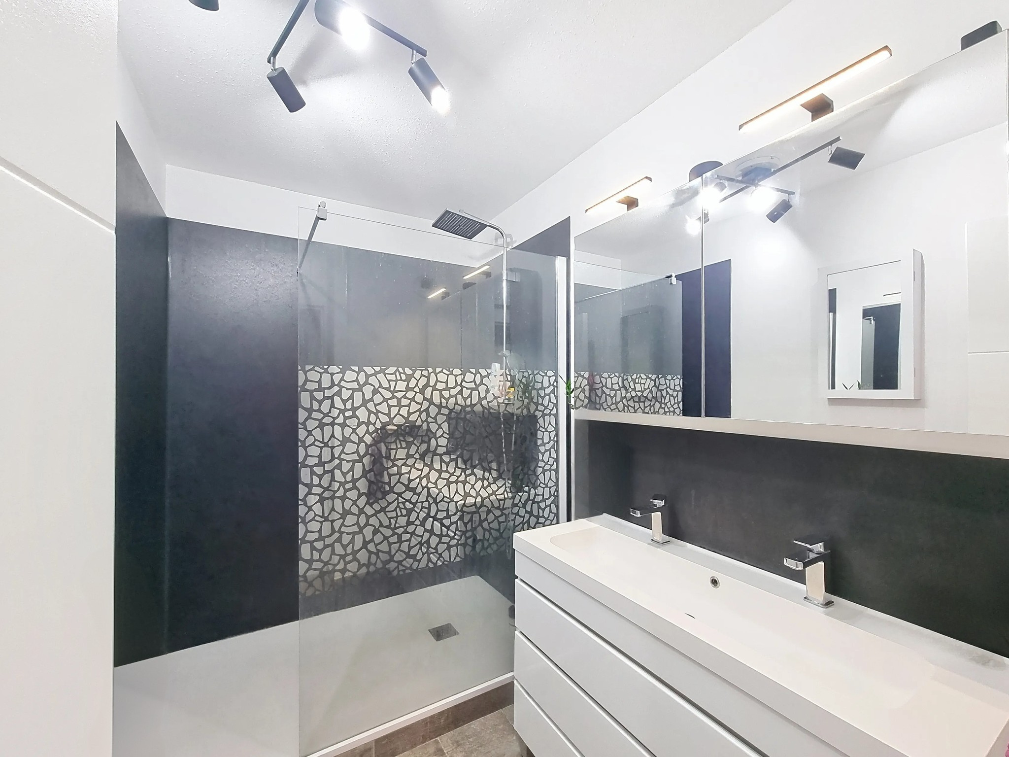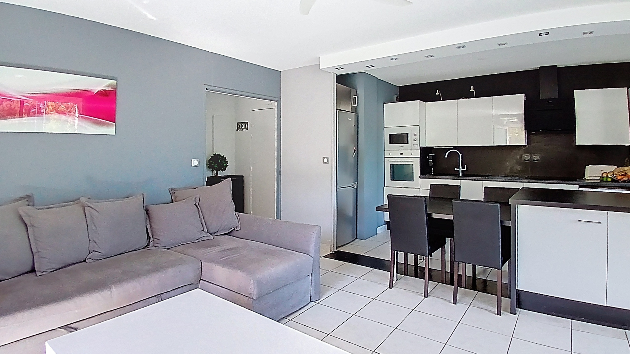 Superbe appartement T3 de 75 m2 entièrement rénové avec soin. Bénéficiant d’une double orientation Sud-Est / Sud-Ouest, il offre un séjour lumineux ouvert sur une cuisine contemporaine entièrement équipée, donnant accès à une terrasse de 17 m2 exposée Sud-Est. Les deux chambres de 12 m2 chacune, avec double placard, s’ouvrent sur les jardins de la résidence, orientés Sud-Ouest. Une salle d’eau ainsi qu’un WC suspendu indépendant complètent ce bien rare. Ce bien se distingue par des prestations soignées, pensées dans les moindres détails pour garantir un confort optimal : climatisation intégrale, volets électriques, double vitrage.Un bien clé en main, alliant confort et praticité, à proximité immédiate du centre-ville et des transports en commun desservant notamment la gare Aix-en-Provence TGV ou encore Marseille. Copropriété de 23 lots. Montant annuel des charges : 1.400€. Aucune procédure en cours. Prix de vente: 324.000 euros HAI. Honoraires inclus charges vendeur inclus. Possibilité d’un grand garage de 18 m2 en supplément.