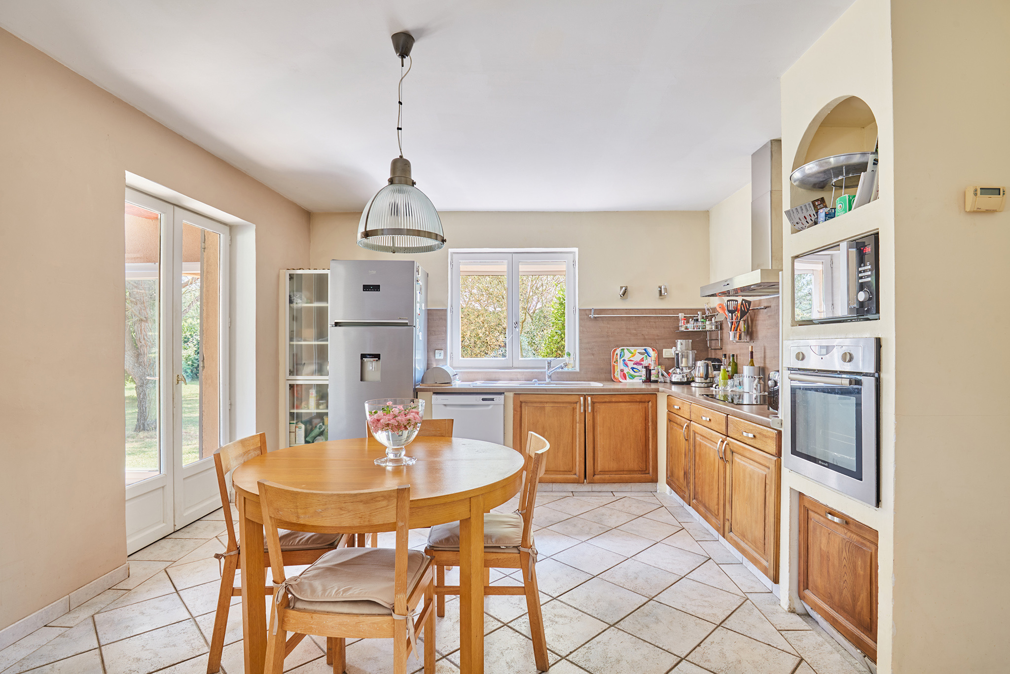 Sur la commune de Puyricard et à seulement 10 minutes du centre ville d’Aix en Provence, magnifique propriété de 210 m2 habitable sur joli terrain plat de 4000 m2. Avec un environnement exceptionnel car au calme absolu, sans vis à vis et vue sur la campagne environnante, cette demeure propose un espace de vie de 60 m2 baigné de lumière avec une suite parentale de plain pied (comprennant une chambre, un dressing, un sauna et une grande salle de bain) ainsi que deux grandes chambres à l’étage et une salle de bain. La véranda vous permettra de profiter d’un espace lumineux pour déjeuner à l’abri du froid tout en étant au soleil et la piscine chauffée vous permettra de vous y baigner la moitié de l’année. Une grande dépendance de 40 m2 avec sa propre salle d’eau et cheminée sera un véritable confort pour recevoir vos proches ou en faire un bureau des plus agréable. Un atelier de 20 m2 ainsi qu’un garage de 35 m2 viennent compléter ce bien. Côté extérieur, un véritable verger vient agrémenter le jardin et ses différents espaces. Panneaux solaires et isolation extérieure en font une maison économique et quasiment passive. Prix de vente : 1 250 000 € (honoraires agence inclus à la charge de l’acquéreur, 4%). RCS Aix 843 146 408.