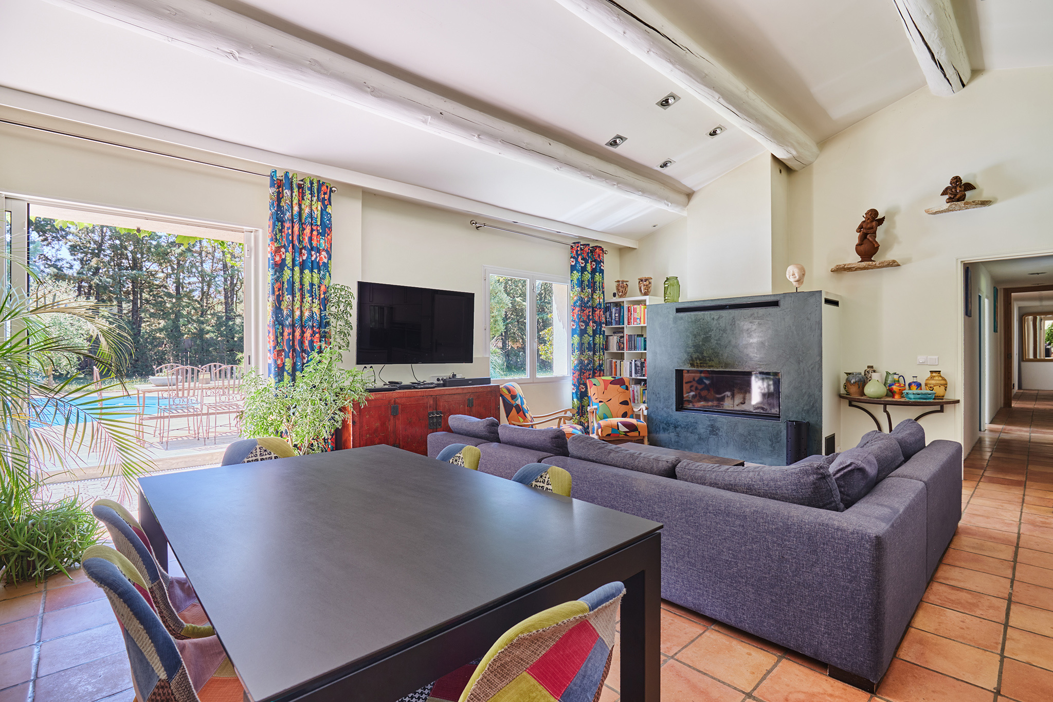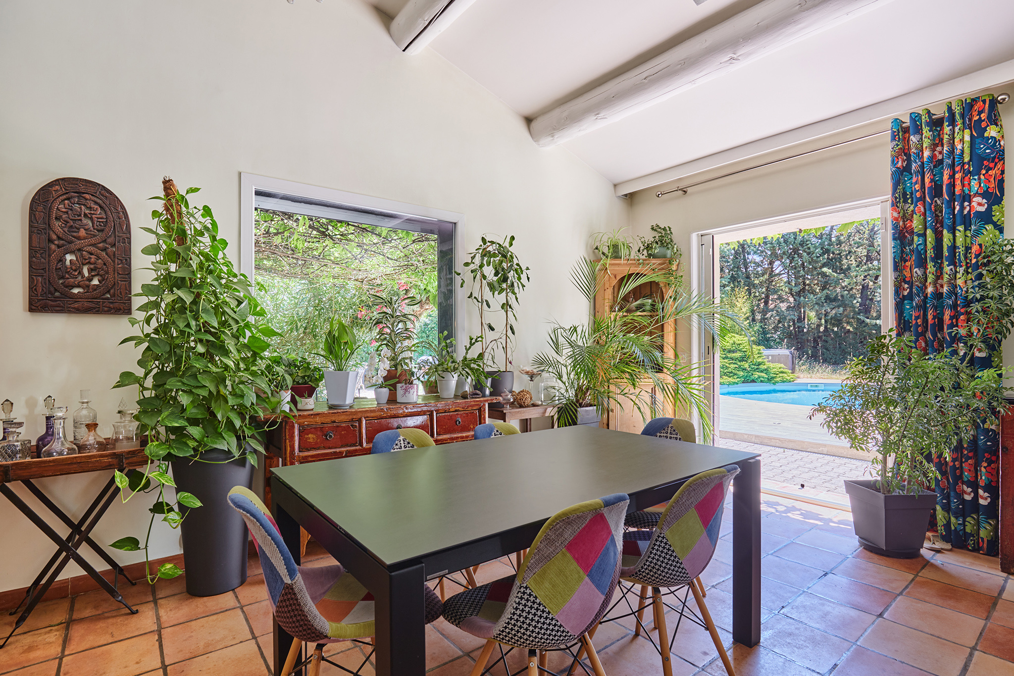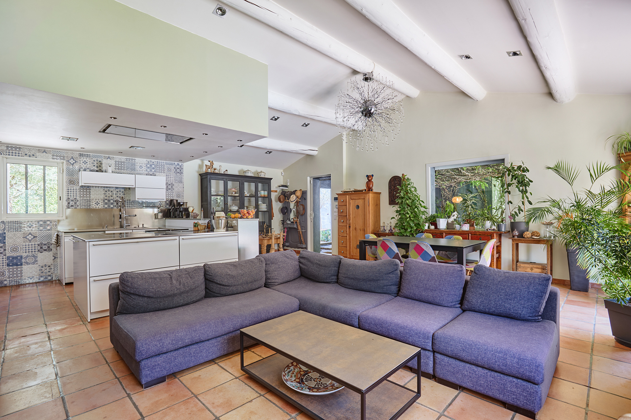 Dans un environnement exceptionnel à 35 minutes d’Aix en Provence sur la charmante commune de Jouques, au calme absolu, cette propriété de plain pied édifiée sur un terrain plat et arboré de 4000 m2 vous séduira par ses prestations haut de gamme. Passé le portail, vous arriverez dans un cadre intimiste sans aucun vis à vis, vous permettant de profiter pleinement des différents espaces extérieurs ou règne le chant des cigales. Piscine au sel, Jacuzzi 6 places, terrasse de 80 m2, four à pizza, poulailler et potager bio sont autant d’agréments qui offrent convivialité et bien être sur cette maison. L’intérieur vous surprendra également par ses prestaions, la qualité des matériaux utilisés ainsi qu’une décoration soignée. Avec un espace de vie de 60 m2 et une cuisine équipée comme dans les plus grands restaurants, cette maison aux allures de maison camarguaise sera idéale pour une famille ou encore comme maison d’hôtes. En effet, elle dispose de six chambres dont trois avec leur propre salle d’eau ainsi qu’une salle de bain principale avec bain à remous. Un studio indépendant de 17 m2 ainsi qu’un atelier de 35 m2 avec cave et deux garages viennent compléter ce bien. Le seul risque : ne plus voir partir vos invités tant ils se sentiront bien chez vous! Prix de vente 1 030 000 € (honoraires agence inclus à la charge de l’acquéreur 4.5%). RCS Aix 843 146 408.