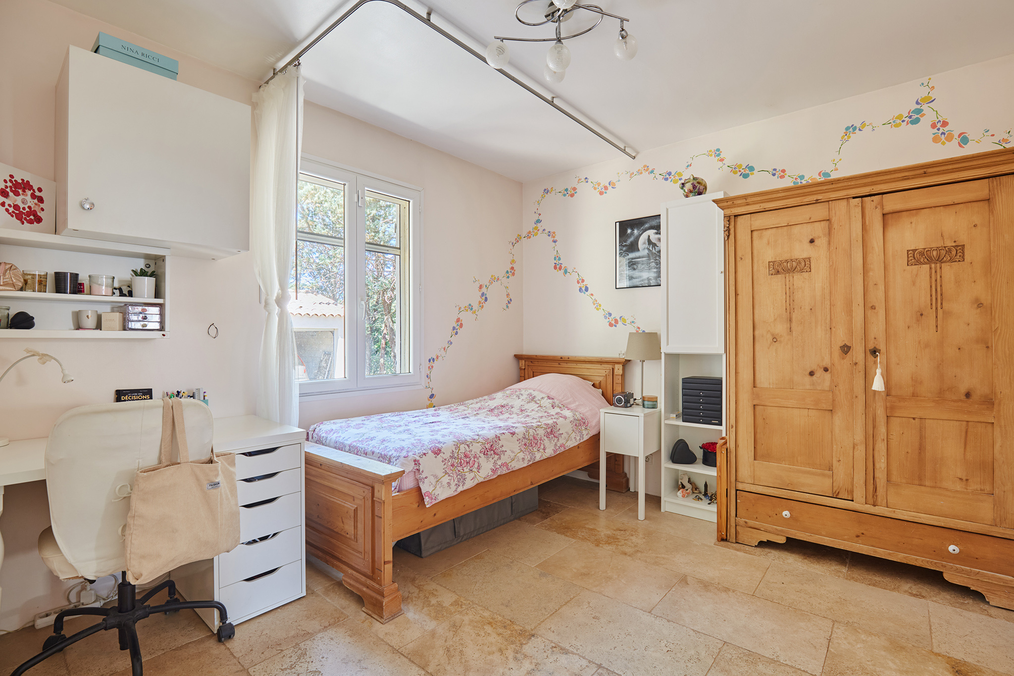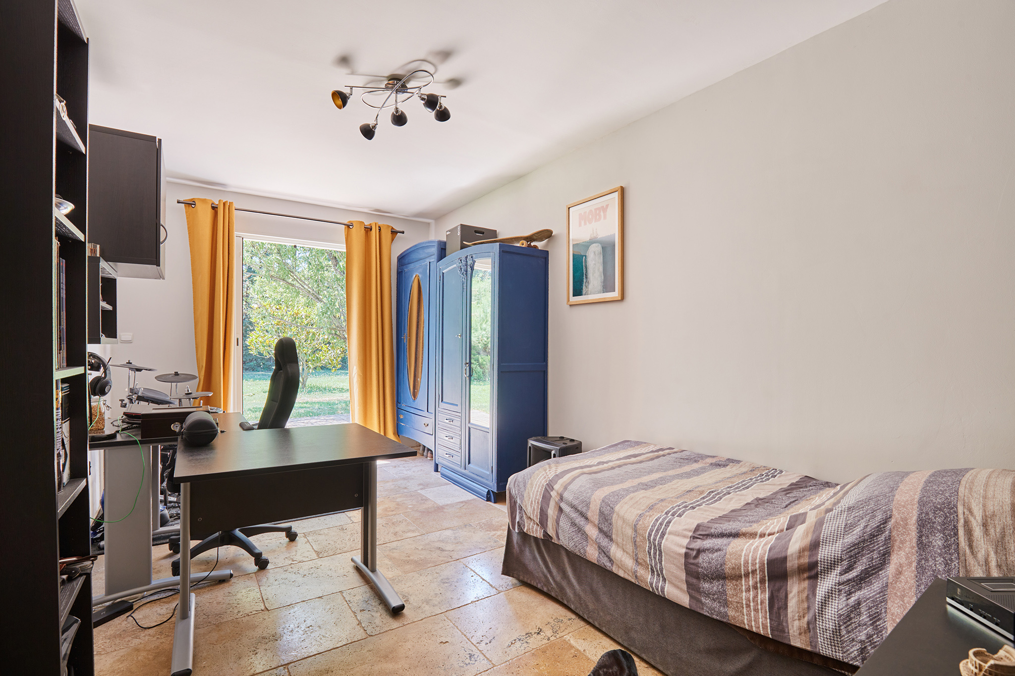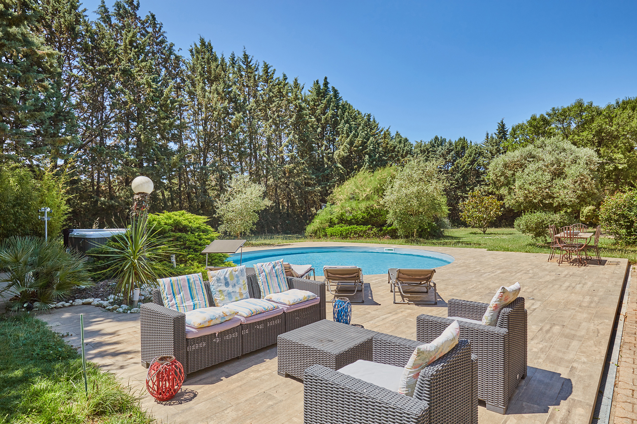 Dans un environnement exceptionnel à 35 minutes d’Aix en Provence sur la charmante commune de Jouques, au calme absolu, cette propriété de plain pied édifiée sur un terrain plat et arboré de 4000 m2 vous séduira par ses prestations haut de gamme. Passé le portail, vous arriverez dans un cadre intimiste sans aucun vis à vis, vous permettant de profiter pleinement des différents espaces extérieurs ou règne le chant des cigales. Piscine au sel, Jacuzzi 6 places, terrasse de 80 m2, four à pizza, poulailler et potager bio sont autant d’agréments qui offrent convivialité et bien être sur cette maison. L’intérieur vous surprendra également par ses prestaions, la qualité des matériaux utilisés ainsi qu’une décoration soignée. Avec un espace de vie de 60 m2 et une cuisine équipée comme dans les plus grands restaurants, cette maison aux allures de maison camarguaise sera idéale pour une famille ou encore comme maison d’hôtes. En effet, elle dispose de six chambres dont trois avec leur propre salle d’eau ainsi qu’une salle de bain principale avec bain à remous. Un studio indépendant de 17 m2 ainsi qu’un atelier de 35 m2 avec cave et deux garages viennent compléter ce bien. Le seul risque : ne plus voir partir vos invités tant ils se sentiront bien chez vous! Prix de vente 1 030 000 € (honoraires agence inclus à la charge de l’acquéreur 4.5%). RCS Aix 843 146 408.