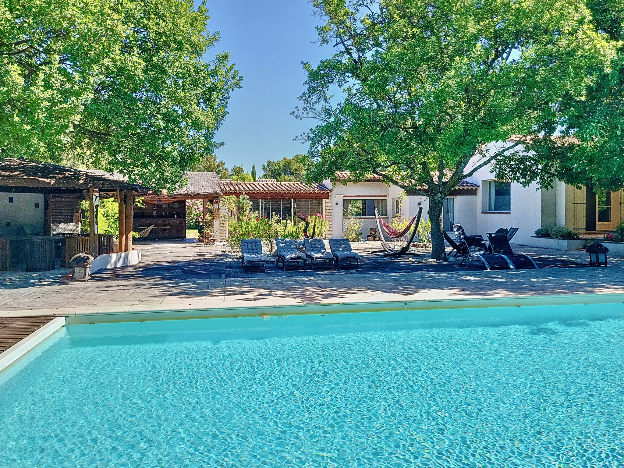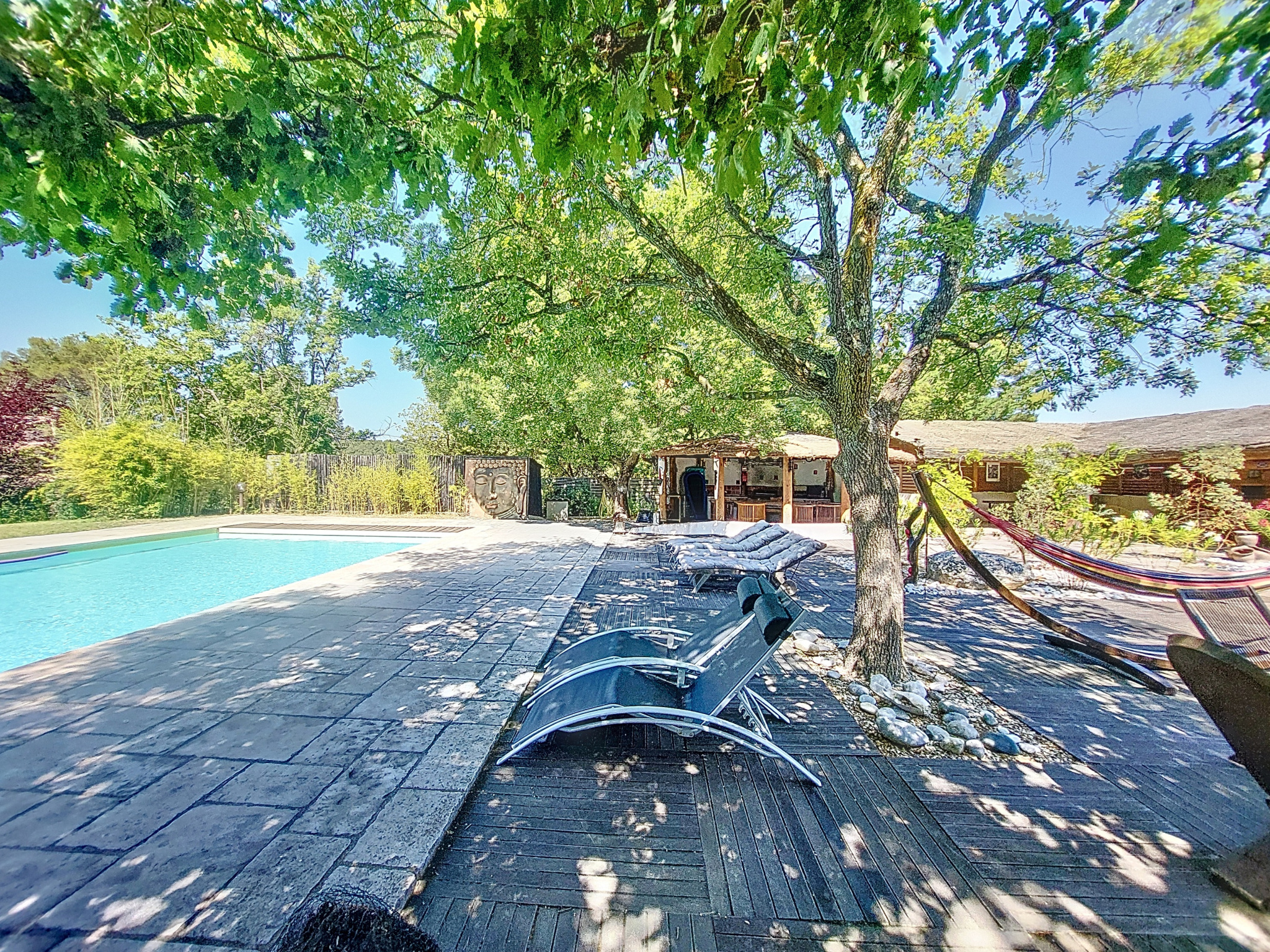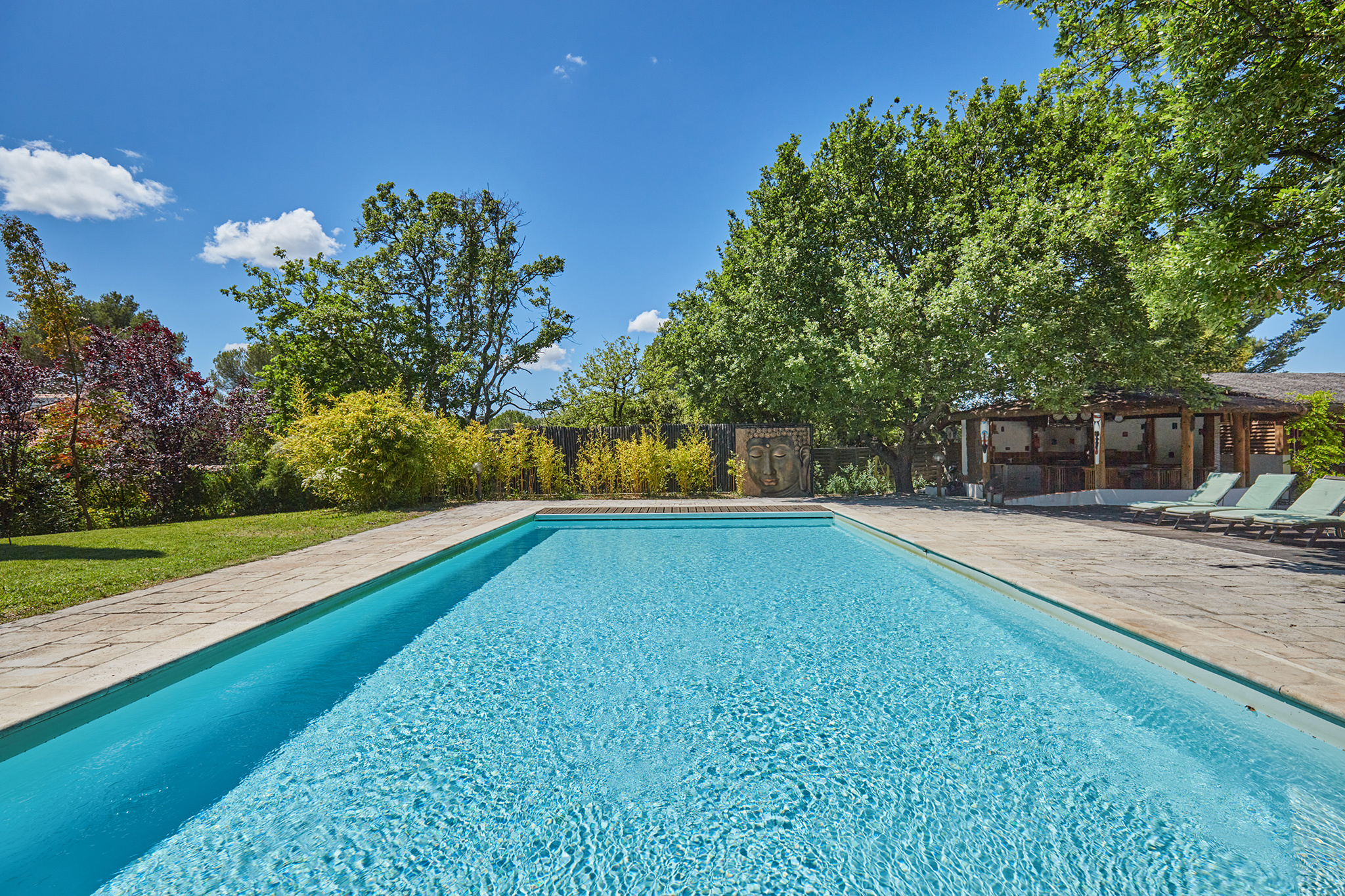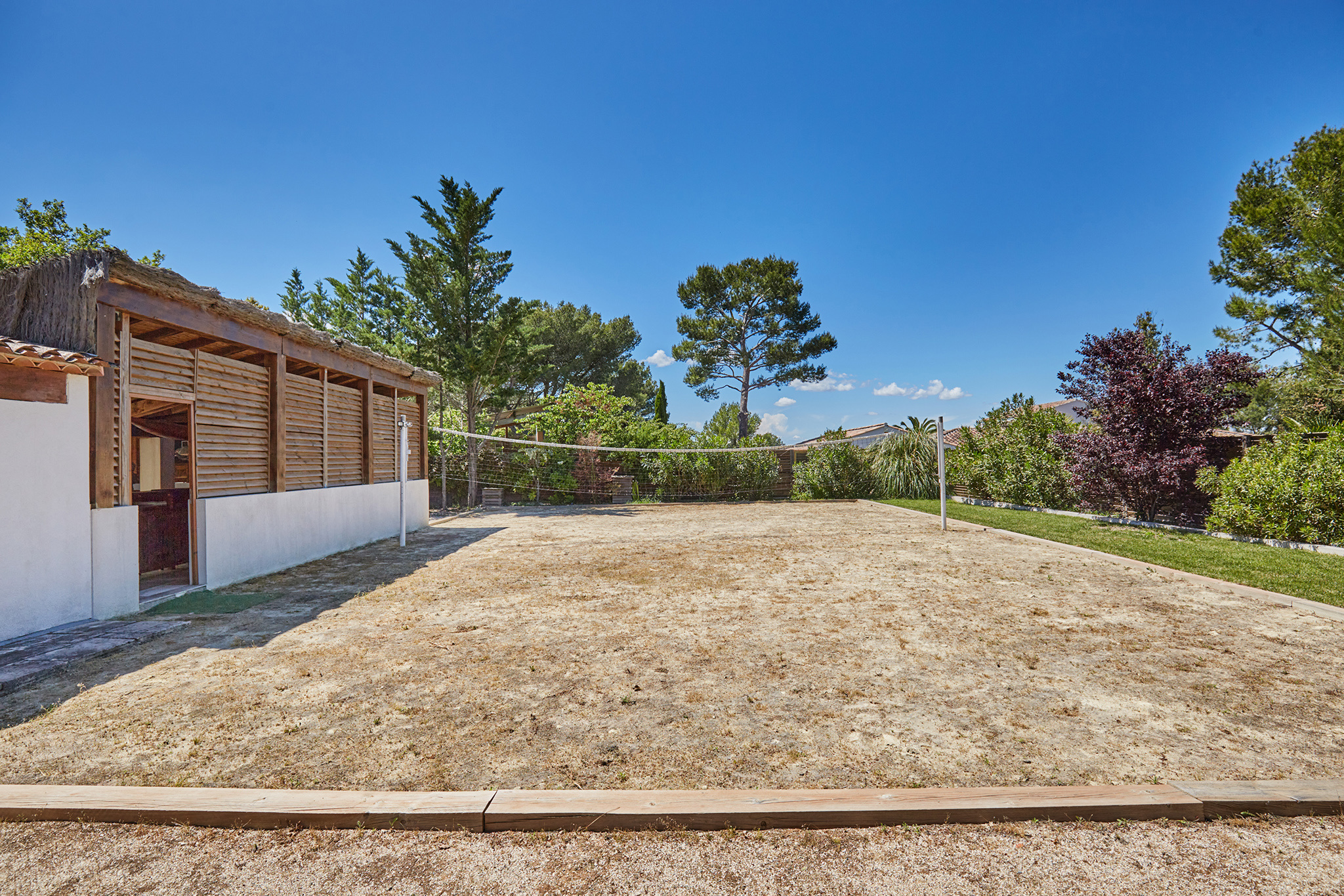Le domaine se distingue également par ses équipements haut de gamme, parfaitement pensés pour la détente et les loisirs. Une piscine de 6×12 mètres avec pool house, un jacuzzi, un terrain de volley, un boulodrome, un coin bar et une salle à manger extérieure abritée sous paillotes créent une atmosphère conviviale, idéale pour profiter pleinement des beaux jours en Provence.
