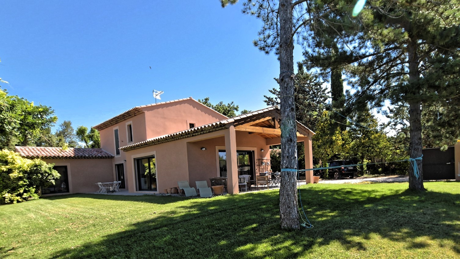 La villa dispose de trois chambres dont une élégante suite parentale de plain-pied, d’un vaste séjour baigné de lumière avec cheminée d’une cuisine américaine moderne avec îlot central ouverte sur une belle terrasse couverte avec vue dégagée sur le jardin et les vignes ainsi que d’un cellier et d’une buanderie pour un confort optimal. A l’étage un coin bureau ainsi que 2 chambres avec placards,d’une salle de bains et WC séparé.