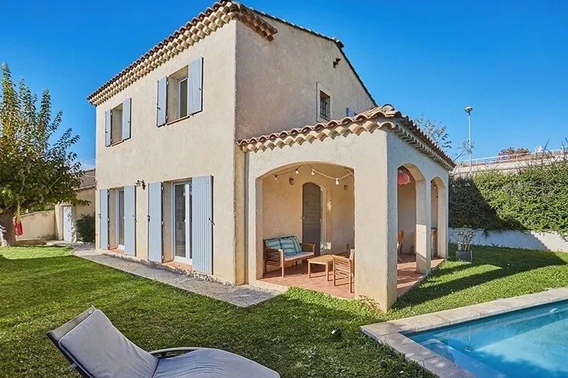 Aix-en-Provence Ouest, quartier Bagatelle, située dans un petit domaine fermé et sécurisé à proximité immédiate des commodités, jolie maison T5 de 127m2 sur un terrain plat et arboré d’environ 480 m2 avec piscine chauffée de 7x3m. Elle offre une grande entrée avec placard, un wc, un bel espace de vie très lumineux exposé Sud de 42m2 composé d’une cuisine entièrement équipée et aménagée, ouverte sur le séjour / salle à manger agrémenté d’un poêle à bois et donnant accès directement à une terrasse couverte de 17m2 ainsi qu’au jardin. Une chambre ainsi qu’une buanderie complètent ce premier niveau. A l’étage, trois chambres avec rangements intégrés dont une suite parentale avec salle de bain, une salle d’eau et un wc. La maison dispose également d’un grand garage de 30m2 dans lequel se trouve une mezzanine très pratique pour le stockage. Toutes commodités à pied, la situation et le bon entretien des lieux en font un bien rare à la vente et séduira une famille pour son accès rapide au centre-ville et l’autonomie qu’elle propose à tous les occupants. Nombreux rangements, climatisation réversible, alarme, double vitrage, portail électrique, arrosage automatique. RSAC 508793577. Prix de vente : 777 000€, honoraires agence inclus de 5% TTC à la charge de l’acquéreur.
